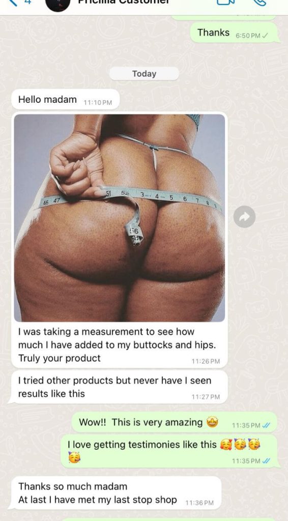 Proven by over 3,000 women in Africa this is the Trusted brand helped ladies get desired curves fast